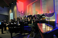 Victoria, the cycle of questions from the divine lover to the beloved asking why they have rejected and scorned the lover. They began in “flash mob” style, scattered throughout the sanctuary, a few beginning to sing and move joined by others until all were assembled in the loft.